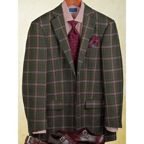 Paul Fredrick Italian Lambswool/Cashmere Plaid Sportcoat Olive 46 Regular